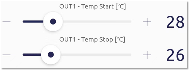 Dès que T est supérieur ou égal à 25°C, la sortie est activée, par exemple un ventilateur d’extraction, jusqu’à ce que T descende en-dessous de 20°C (ou égal).